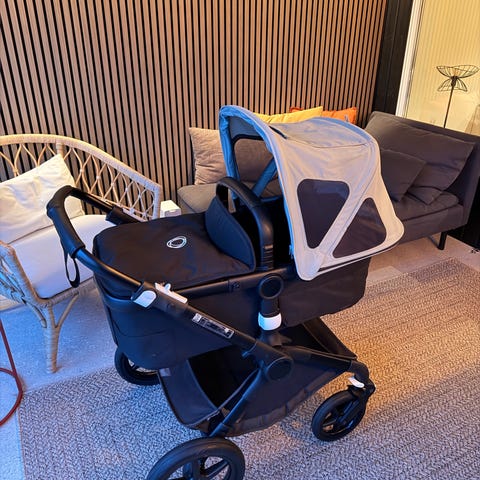 Grå jättefin petite cherie barnvagn med liggdel och sittdel. Vagnen är lätt och stabil och enkel qtt fälla ihop. Medföljer regnskydd samt babyskydd från maxi cosi med adapter för Vagnen samt bas med isofix.
