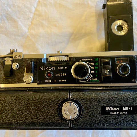 Nikon motorgrepp till kamera i svart utförande. Extra grepp med inbyggd motor för filmtransport, avsett att monteras på kompatibel Nikon-kamera. Utrustningen ger bättre ergonomi vid vertikal fotografering och kan underlätta snabbare serietagning beroende på kamerahus och inställningar. Passar som komplement till befintlig Nikon-analogkamera där motoriserad filmtransport önskas.