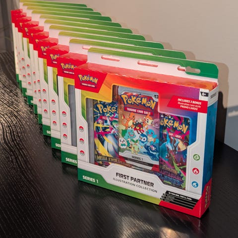 Förpackningen innehåller Pokémon Trading Card Game-produkter med illustrationstema från First Partner-serien.