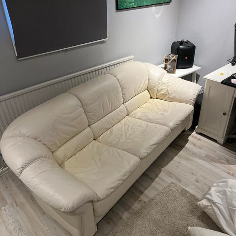 Säljer min otroligt sköna soffa i färgen svart pga flytt till mindre lägenhet! Katt finns i hemmet, också klös på soffan (se bild)