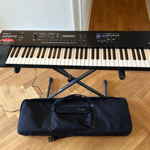 Har en Casio HT-3000 synth. Det medföljer sladd för att koppla in den till eluttag, en sustainpedal samt ett keyboard stativ. Även en förvaringslåda tillkommer.