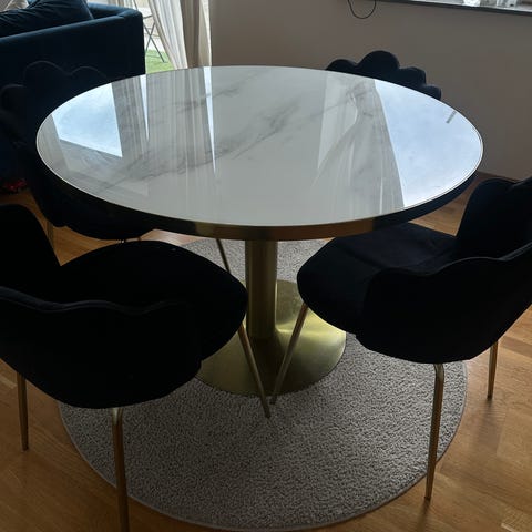 Ellos matgrupp bestående av runt matbord och stoppade stolar. (Säljes separat om önskas)