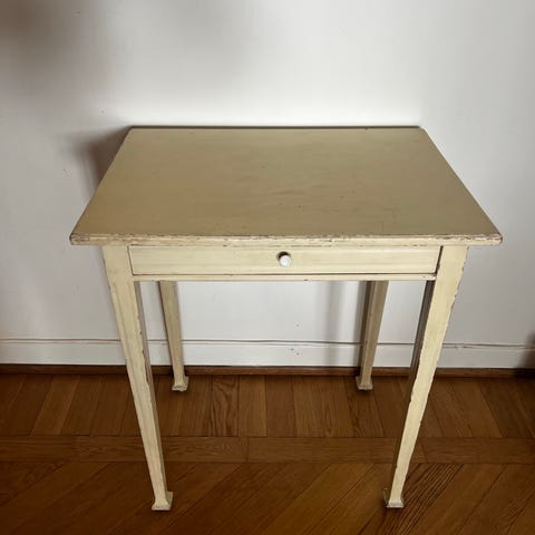 Vacker gammal skolbänk/ skrivbord målad i mjuk gul färg