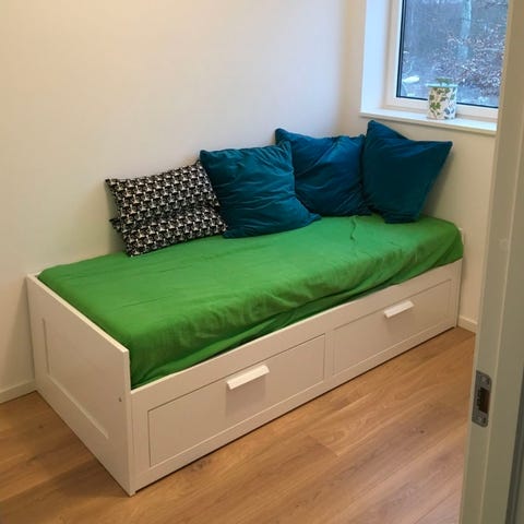 Fin Ikea dagbädd / sängram med bra förvaring. Använd som gästsäng. Madrass ingår ej.