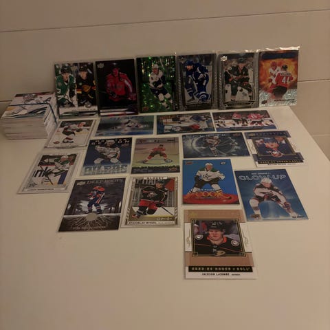 Upper Deck MVP hockeykort med spelaren Kyle Palmieri från New York Islanders. Kortet är en Silver Script‑variant med spelarfoto på framsidan och statistik samt spelarinformation på baksidan. Lämpligt för samlare av NHL‑ och hockeykort, särskilt de som fokuserar på New York Islanders eller Kyle Palmieri. Format i standardstorlek för samlarkort. Det finns även en ingraverad signering på framsidan av kortet. Skriv till mig så löser vi frakt