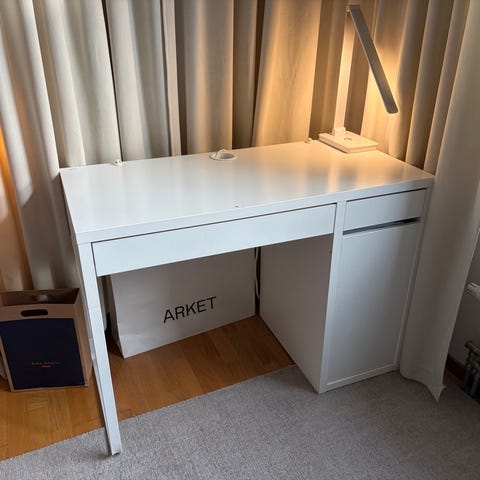Säljer ett vitt skrivbord ”MICKE” från IKEA med två lådor