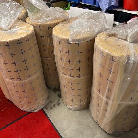 Jag har använt ca 12-13 meter så ska vara ca 16-17kvm kvar på rullen.