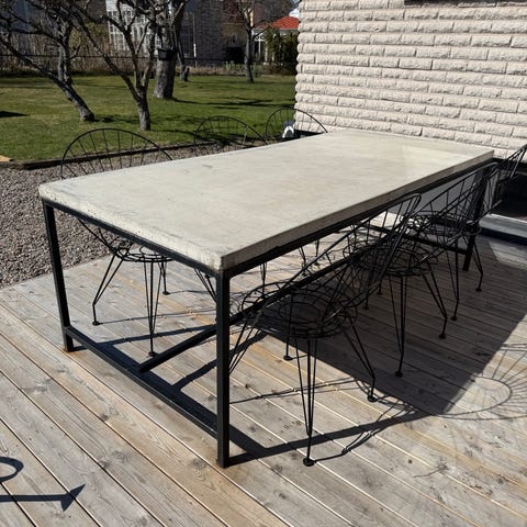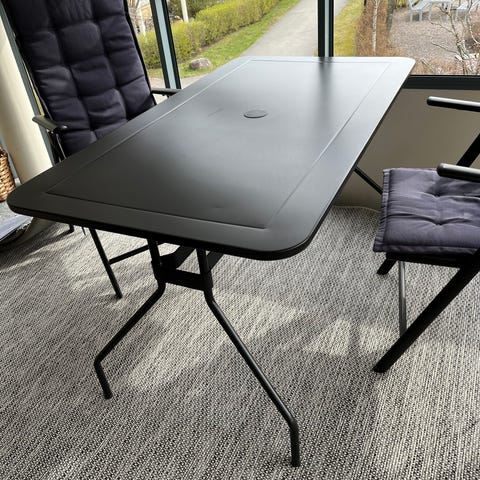 Ute matbord med 9 positions stolar. Dynor ingår.