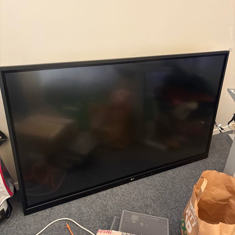 Samsung tv, 40 tum. Svart. Finns en fot till som medföljer. Skriv för frågor