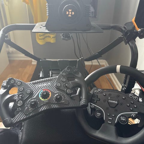 Moza Racing ratt, pedaler och handbroms för racingsimulator. Rattbas med monterad ratt, samt tre pedaler (gas, broms och koppling) och handbroms medföljer. Lämpligt för montering på skrivbord eller rigg. Alla kablar och kartonger medföljer. Allt är mindre än 6 månader gammalt och använt sammanlagd tid totalt ca 2 timmar. Säljer allt tillsammans i ett paket och säljer till högstbjudande.