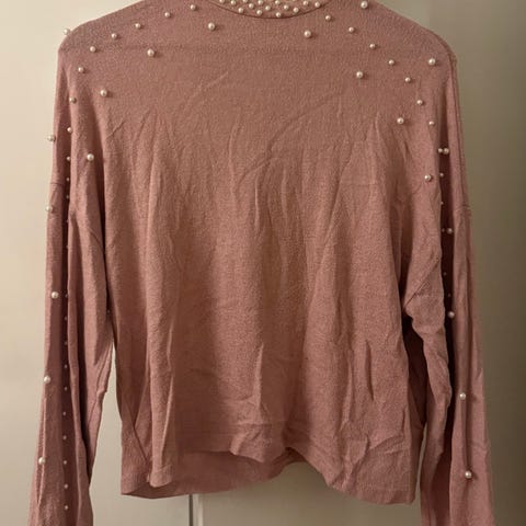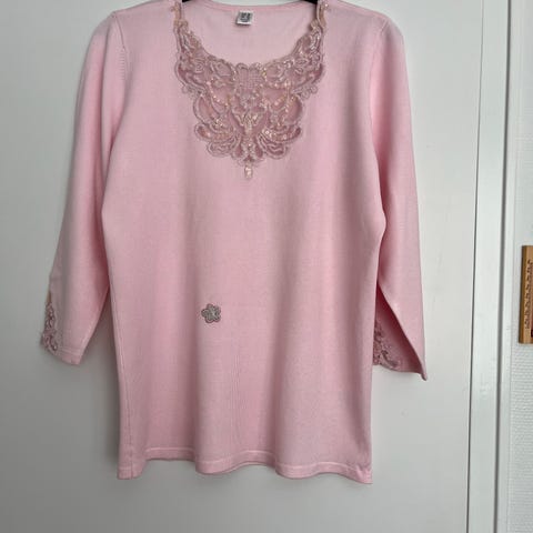 EZOP tröja för dam i storlek S. Tröjan är röd med blommigt broderi framtill. Rund halsringning och långa ärmar. Materialet ser ut att vara mjukt och något strukturstickat. Passar som vardagströja eller för enklare festligare tillfällen. (Storlek: det står M tror att det är en liten M)