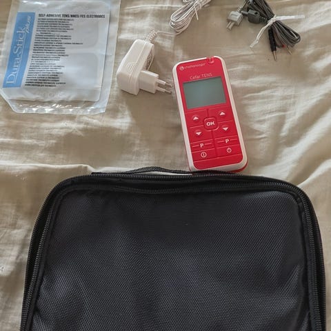 Två nya elektroder, två uppladdningsbara batterier, väska och handbok. Finns I Vikarbyn