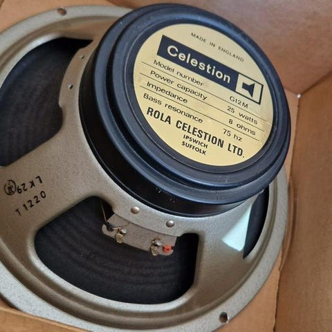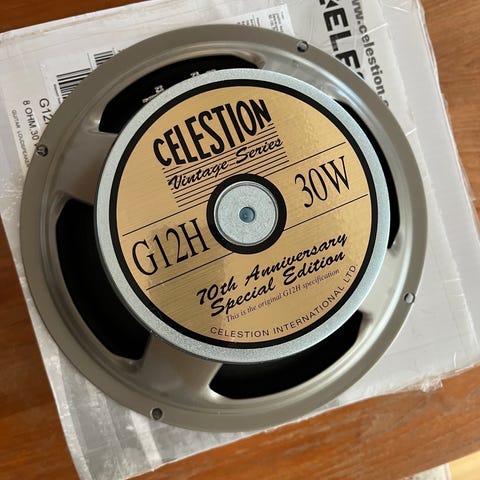 Låter kanon och är en blandning mellan de nya g12t75 och greenback ungefär. Lagom på allt ungefär och låter kanon till blues, pop, rock och hårdrock .