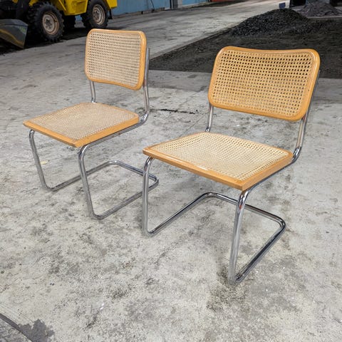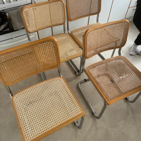 Stolen brukar kallas Bauhaus eller Cesca och designades av Marcel Breuer . Bryr mig inte om det är orginal, replika, eller hemmabygge. Det är också okej om det finns lite skavanker. Färg spelar ingen roll.