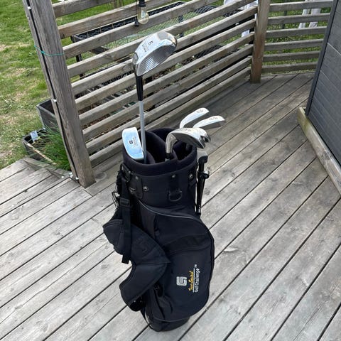 Golfset j7, j9, SW, mw no4, Driver ,putter, Callaway bag inkl raincover lämpl ålder ca 10 år