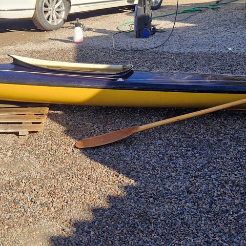 Kajaken har ”drop stitch core” golv som gör den extra stabil. Tål att lastas med mycket packning.