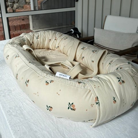 Liewood babynest i beige med små vita prickar. Jättefint skick! Bara använd några få gånger.
