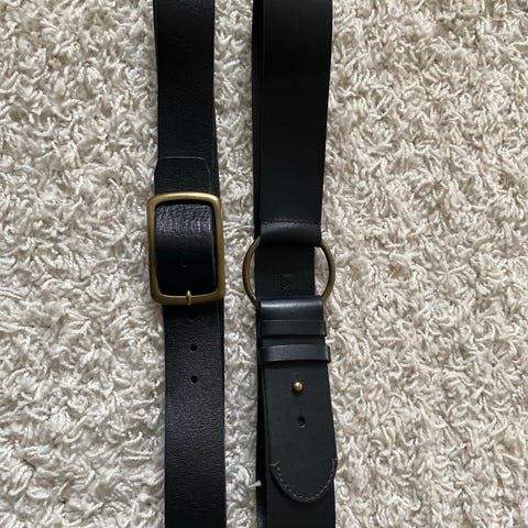 Carlo Monti flätade bälten unisex i läder. Ett bälte i svart och ett i brunt, båda med flätad rem. Det svarta bältet har rund svart spänne och det bruna bältet har rektangulärt metallspänne i mässingsfärg. Passar som unisex-accessoar till byxor, kjolar eller klänningar där justerbar midjevidd önskas.Bruna 107cm långt, svarta 90cm långt.