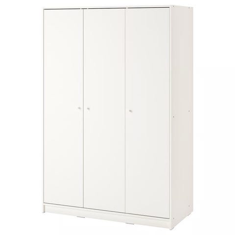 Paxgarderob fördelat på två st 50 cm samt 2 st 100 cm vita stommar