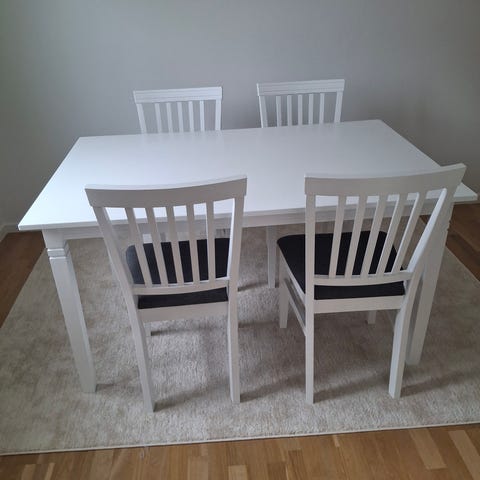 Matgrupp vitmålad med 6 stolar.