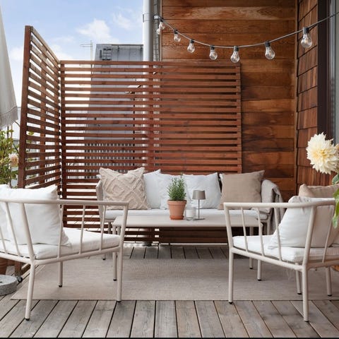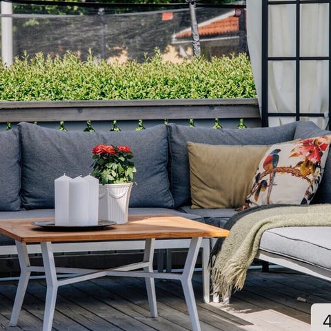 Soffan är i bambu och tyg i polyester. Endast använts inomhus.