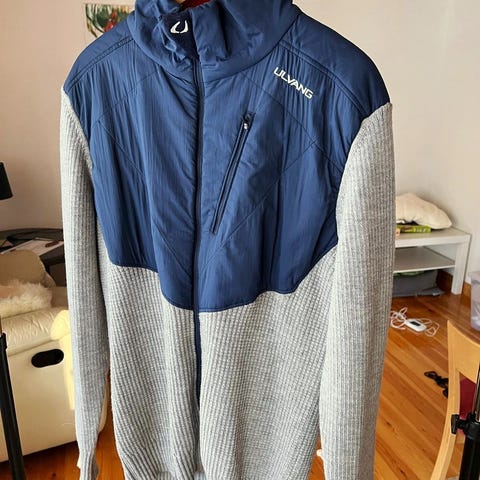 Woolpower Ullfrotté 400 tröja för herr i storlek L. Tröjan är blå och tillverkad i ullmaterial med ullfrottékonstruktion. Hel dragkedja framtill och hög krage enligt bild. Passar som värmande mellanlager eller ytterplagg beroende på väder och aktivitet.