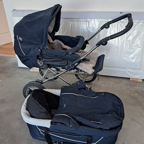 Emmaljunga duovagn grå med liggdel sittdel och skötväska