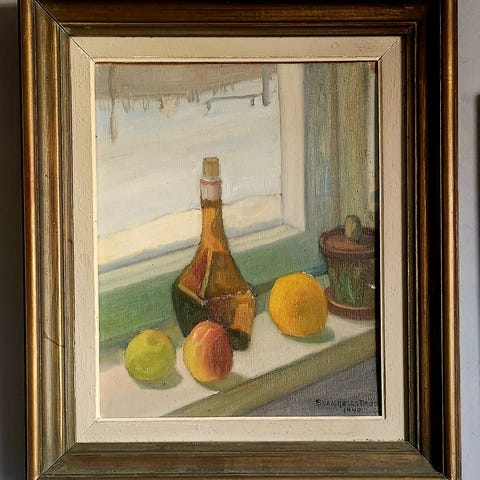 Signerad målning av Sigrid de Rougemont – klassiskt stilleben i varm palett