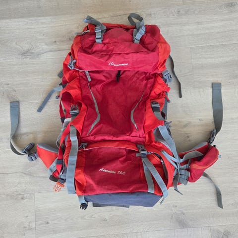 Discovery 30 ryggsäck i röd färg med grå detaljer. Ryggsäcken har vadderade och justerbara axelremmar samt vadderad ryggpanel för ökad bärkomfort. Midjebälte och bröstrem ger extra stabilitet vid användning. På sidorna finns nätfickor för exempelvis vattenflaska eller mindre tillbehör. Lämplig för vandring, utflykter och vardagsbruk. Ryggsäcken är på 30 liter och väldigt skön att bära. Skickas inte. Finns på Ersboda Umeå.