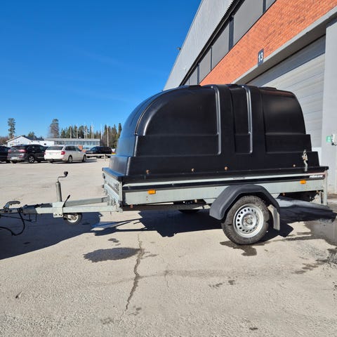Släpvagn med kapell. Vagnen har täckt lastutrymme med duk/kapell som skyddar lasten mot väder och vind. Lastytan är rektangulär och lämpar sig för transport av exempelvis byggmaterial, trädgårdsavfall eller annan skrymmande last. Kapellet kan öppnas bak för enkel lastning och lossning. Vagnen är utrustad med dragstång och stödhjul framtill för enklare hantering vid på- och avkoppling. Besiktat tom Feb-2027, Sommar/Vinterdäck i OK skick, Max Last: 580kg, lastutrymme: 2,75x1,34, Har varit med i några år, men är i gott skick, senast bytt: Draghansken. Lätt och behändigt Villa Släpvagn, passar bra nu till Vårsysslorna…