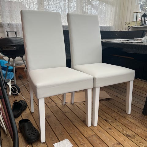 7 bordstolar i val använt skick men kan fixas med ett överkast