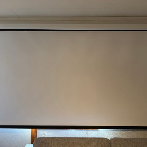 Stor motordriven filmduk av hög kvalitet. Storlek 240x240 cm. För tak-eller väggmontage.