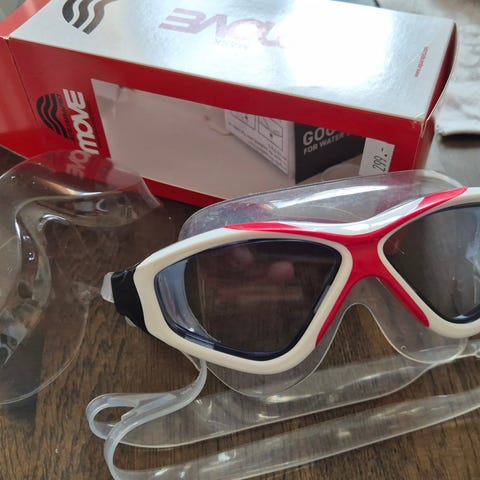 Simplatta Arena, två par simglasögon Aquarapid samt simfenor Tyr storlek 37-38