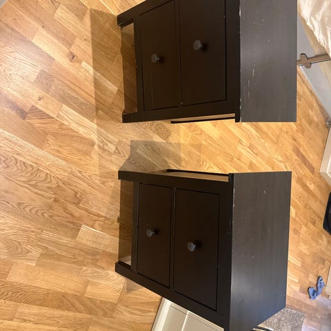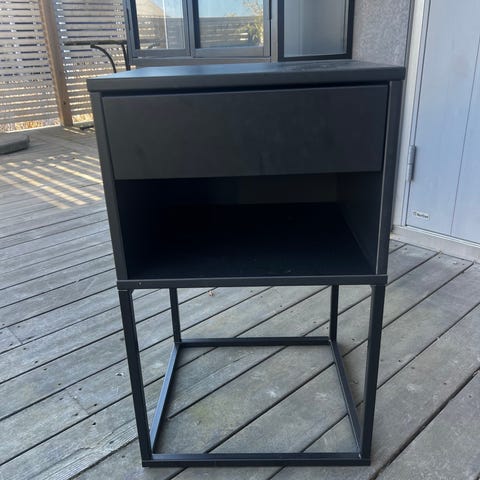 Säljer ett stilrent sängbord/nattduksbord med metallstativ.