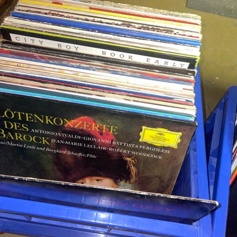 En låda LP-skivor