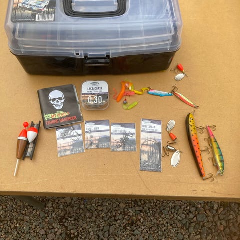 Plastlåda med fiskekrokar – praktisk och organiserad