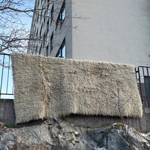 Säljer en fantastisk handgjord grekisk Flokati-matta i 100% ull. En riktig statement-piece som ger rummet en varm, ombonad och lyxig känsla.