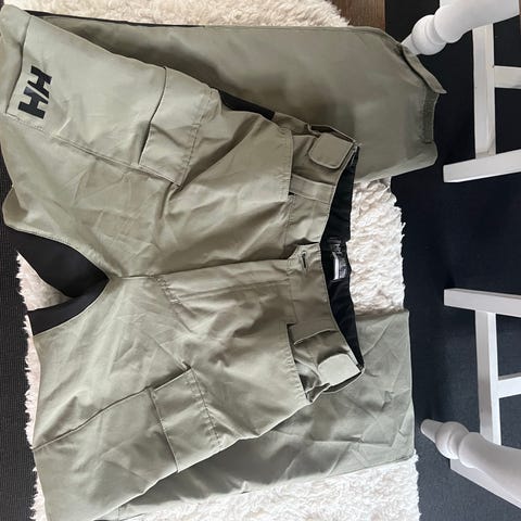 Byxor avsedda som arbets- eller friluftsbyxor i grön och brun färg. Modellen har förstärkta partier över knän och framsida lår samt runt sätet i kontrasterande brunt material. Byxorna har hällor för bälte i midjan och raka ben. Passar för arbete, jakt eller annat utomhusbruk där extra slitstyrka över utsatta områden behövs.