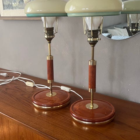 Lampetter från 60 talet i glas och mässing! Hämtas helst på plats! Kan ev ta med till närliggande områden