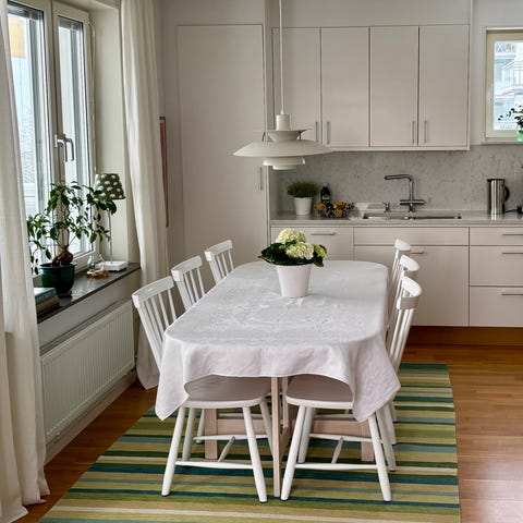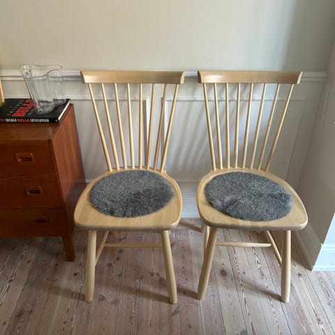 4st stolar Lilla Åland i oljad björk, tillverkade av Stolab och med design Carl Malmsten.