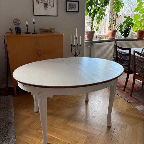 Rund bord med i läggs skiva 160x 120 mm samt 3 stolar