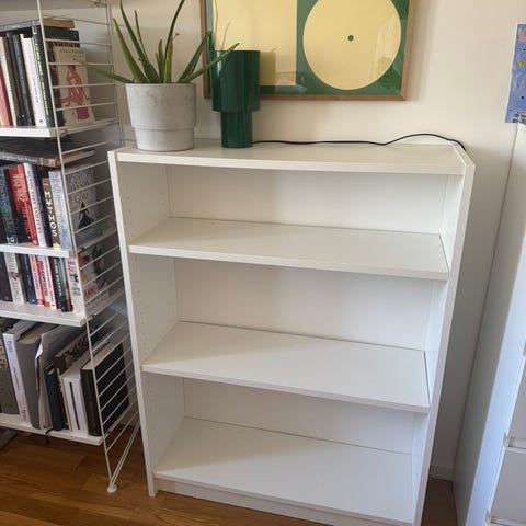 Vi säljer en IKEA BILLY bokhylla i vit. Perfekt för böcker, pärmar och förvaring – funkar lika bra i vardagsrum som i barnrum eller kontor.