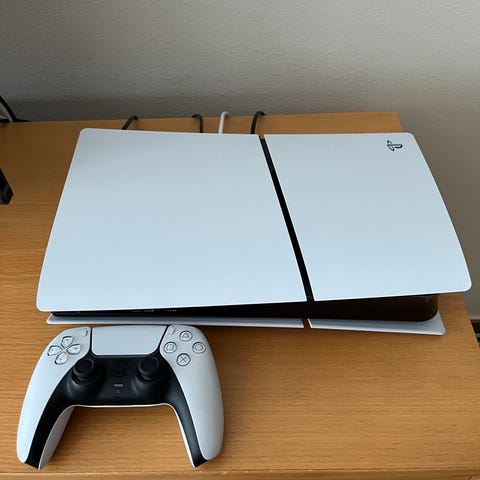 Sony Playstation 5 Digital Edition spelkonsol i vit färg. Konsolen är den digitala varianten utan skivläsare och används tillsammans med digitalt nedladdade spel och media. Levereras med en trådlös handkontroll enligt bild. Passar för spel, streaming och annan underhållning via kompatibla tjänster och tillbehör. Som ny, mvh Julia ! Kvitto ingår