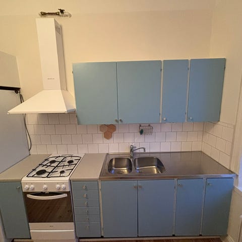 Äldre men fullt fungerande kök bortskänkes vid nedmontering. Perfekt för sommarstuga, garage, hobbyutrymme.