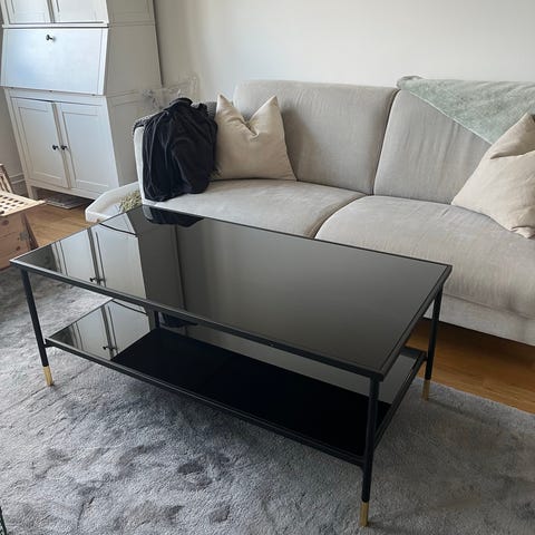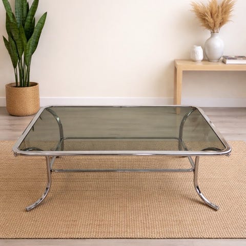 Glaset är tonat och ger ett mjukt intryck, samtidigt som den stabila metallstommen gör bordet rejält och hållbart. Perfekt som soffbord – lätt att matcha med olika inredningsstilar.