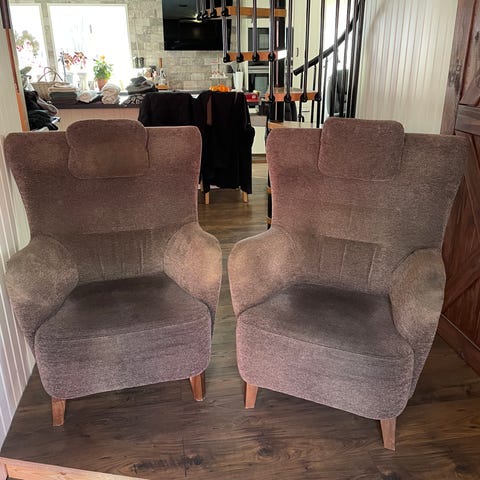 200/st eller 340 för båda! Två stycken gula fåtöljer. Köptes i andrahand för dyrare än nuvarande priset och var synligt använda då men funkar väldigt bra iallafall! Säljs vid upphämtning och dammas/dammsugs/rengörs så gott som möjligt innan det. Har inte använts så mycket av oss. Mysig färg och tycker själv att de är väldigt bekväma. Bra för att sitta och läsa i eller kolla på någonting 😋