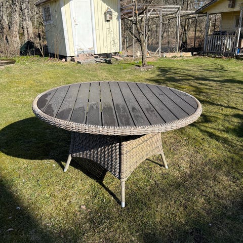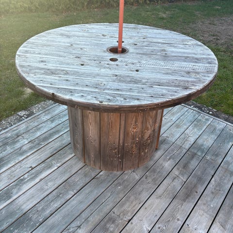 Träbord kabeltrumma runt utebord