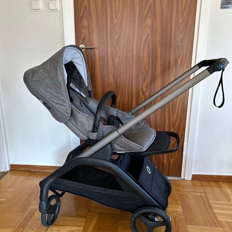 Stokke barnvagn med liggdel grå