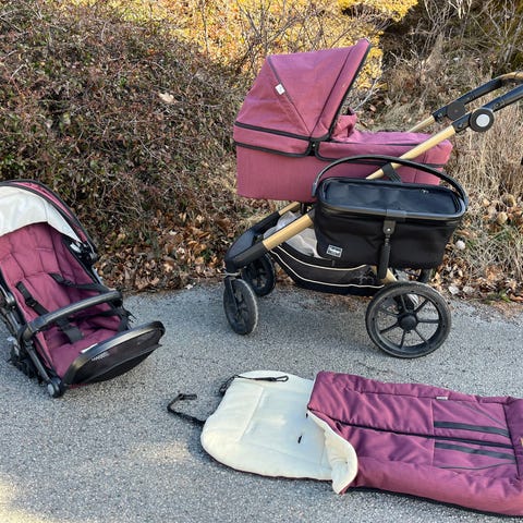 Trevlig och rejäl barnvagn, använd till ett barn. Köpt ny 2021, och inte använd senaste två åren. Alltid stått inomhus. Regnöverdrag, matchande skötväska och mobilhållare ingår. Katter och hundar finns i hemmet.