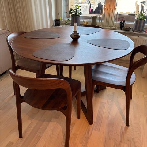 Matbordet är möjligt att smidigt förlänga med iläggsskiva om umgänget expanderar.